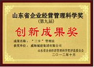 成果名稱:“三卡“管理獎(jiǎng) 獲獎(jiǎng)單位:威海城建集團(tuán)有限公司 頒獎(jiǎng)單位:山東省企業(yè)委員會(huì)頒發(fā)