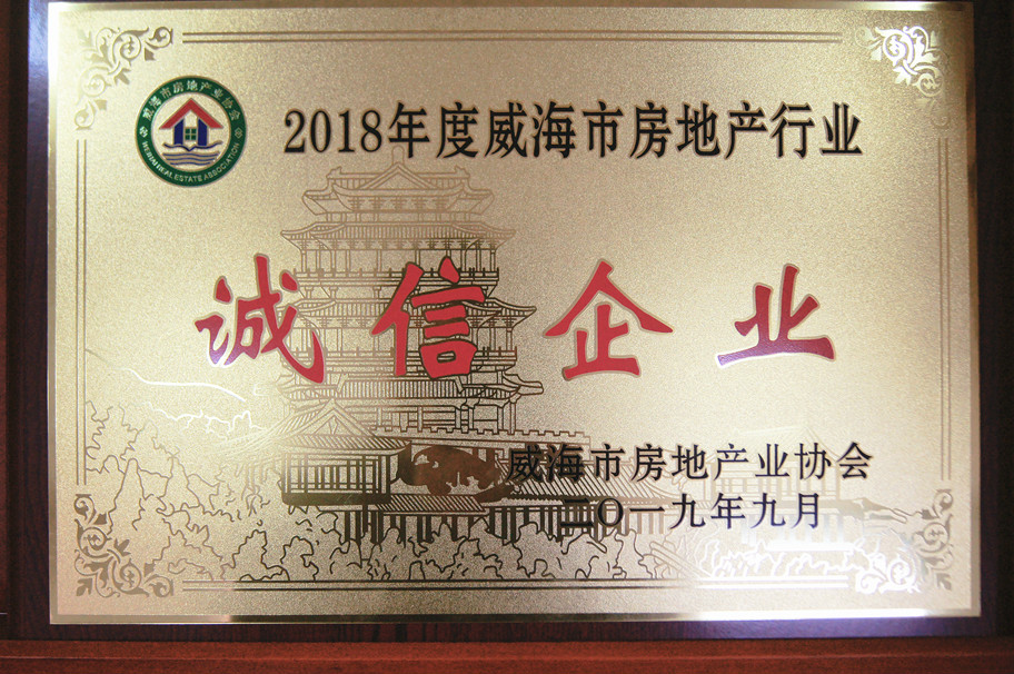 獲獎(jiǎng)名稱:2018年度威海市房地產(chǎn)行業(yè)誠(chéng)信企業(yè) 獲獎(jiǎng)單位:威海市房地產(chǎn)協(xié)會(huì) 頒發(fā)單位:威海市房地產(chǎn)業(yè)協(xié)會(huì)