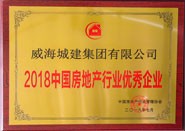 成果名稱:2018中國(guó)房地產(chǎn)行業(yè)優(yōu)秀企業(yè),獲獎(jiǎng)單位:威海城建集團(tuán)有限公司,頒發(fā)單位:中國(guó)房地產(chǎn)行業(yè)管理協(xié)會(huì)