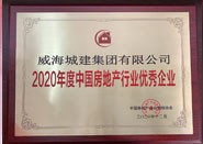 成果名稱:2020中國(guó)房地產(chǎn)行業(yè)優(yōu)秀企業(yè),獲獎(jiǎng)單位:威海城建集團(tuán)有限公司,頒發(fā)單位:中國(guó)房地產(chǎn)行業(yè)管理協(xié)會(huì)