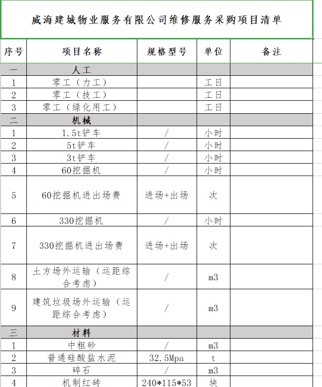 威海建城物業(yè)服務(wù)有限公司維修服務(wù)采購項(xiàng)目