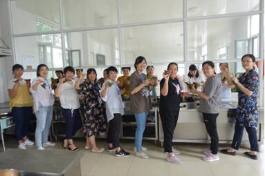 活動原定下午1點開始,很多女職工都選擇了提前到達,大家摩拳擦掌、躍躍欲試,都想一展身手。為充分弘揚公司尊老、敬老的光榮傳統(tǒng),集團女工委特意邀請退休職工張大姐進行現(xiàn)場指導(dǎo)。配料、折葉、扎繩、蒸煮,大家分工明確、各顯其能,整個過程充滿了歡聲笑語。經(jīng)過辛勤勞作,幾百個形態(tài)各異的粽子新鮮出爐,清爽甘醇的味道飄滿了整個食堂,看著大家熱火朝天的勁頭,張大姐不時給予了贊許的目光。